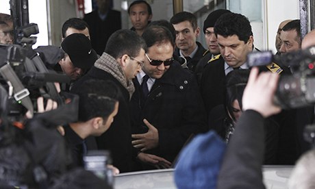 Baris Guler (centre in sunglasses), son of Turkey's interior minister, is escorted by plainclothes police. Photograph: Reuters